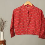 elegance to your wardrobe with this handcrafted block print cotton Designed with intricate floral motifs on a soft beige base, this top is perfect for casual outings, office wear, or ethnic styling. The long sleeves with contrasting red printed cuffs bring a unique charm, blending traditional artistry with modern comfort.