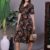 Women’s Beige & Black Abstract Print Cotton Shirt Dress Midi Dresses