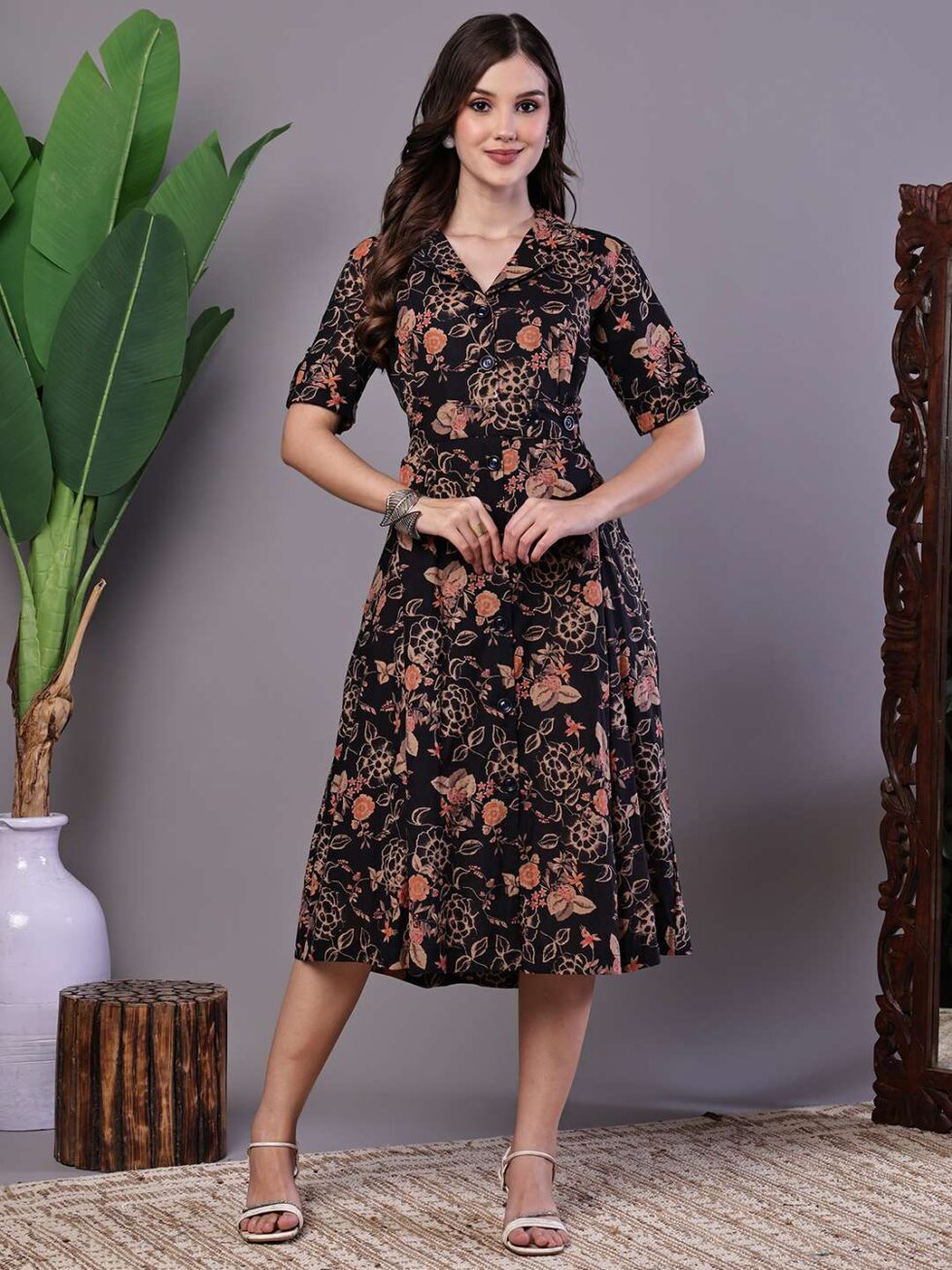 Effortlessly stylish dress with a vibrant abstract print, tie-up shoulder straps, and a chic high-low handkerchief hemline ? perfect for casual days or evening gatherings.