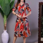 Women’s Leaf Print Button-Down Cotton Midi Dress