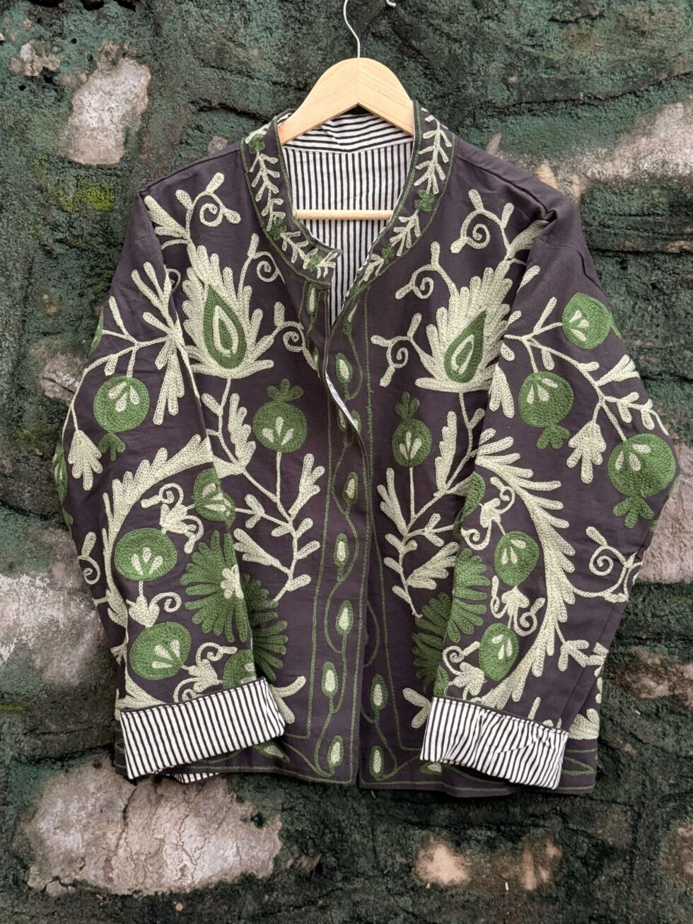 Luxurious velvet jacket featuring intricate Suzani embroidery. Perfect blend of elegance and tradition — ideal for festive and ethnic occasions.
