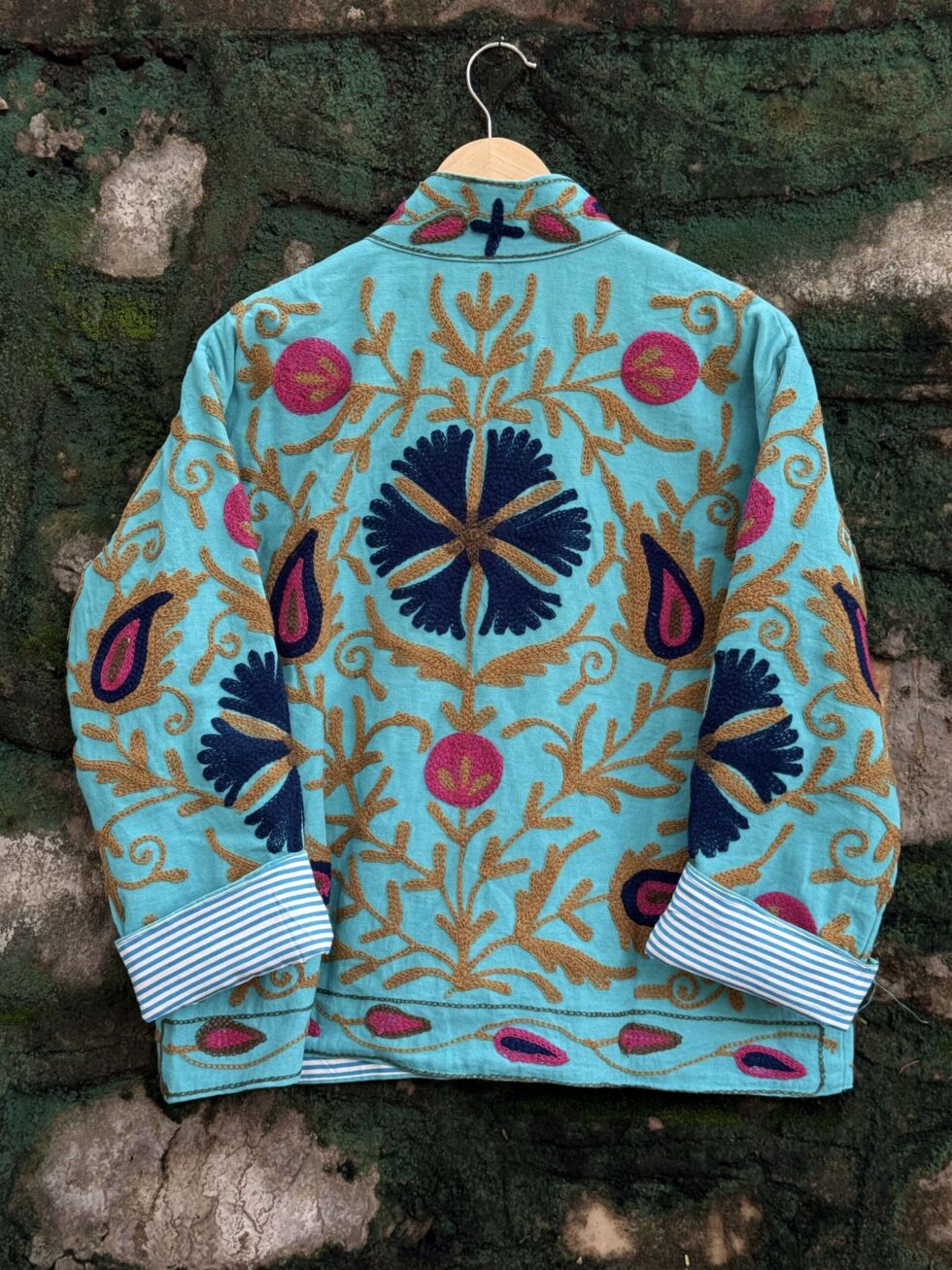 Luxurious velvet jacket featuring intricate Suzani embroidery. Perfect blend of elegance and tradition — ideal for festive and ethnic occasions.